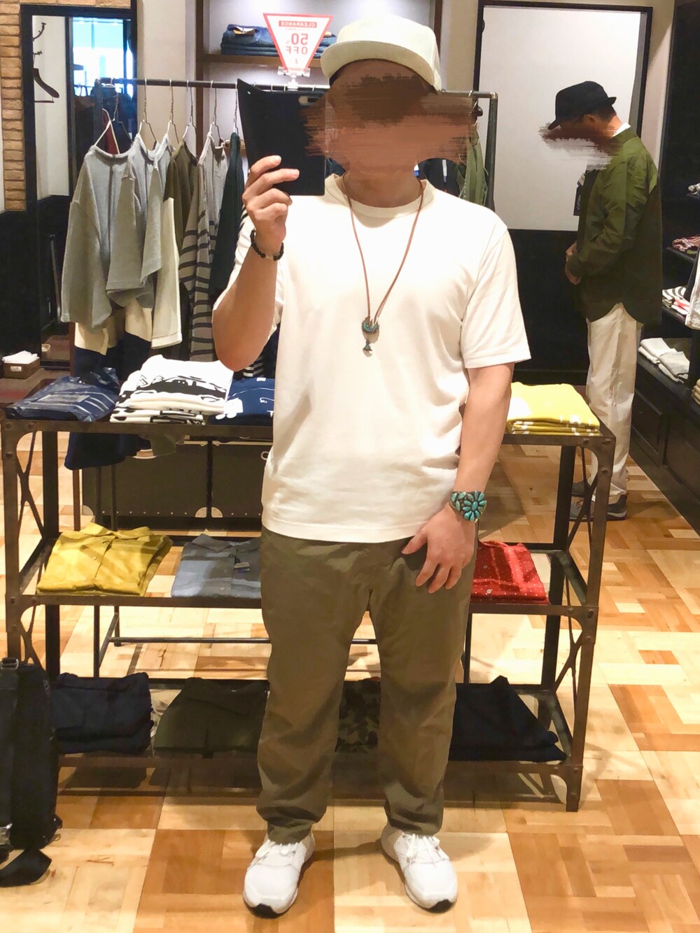 「空と大地の間に」 今日は超シンプル。 カトーのモスグリーンのパンツにWISLOMの白Tを合わせた。スカイブルーのキャップが空でモスグリーンが大地になってる。 アクセサリーのインディアンジュエリーが天と地の間に生きる人になってる。。。ってことにしようかな!笑