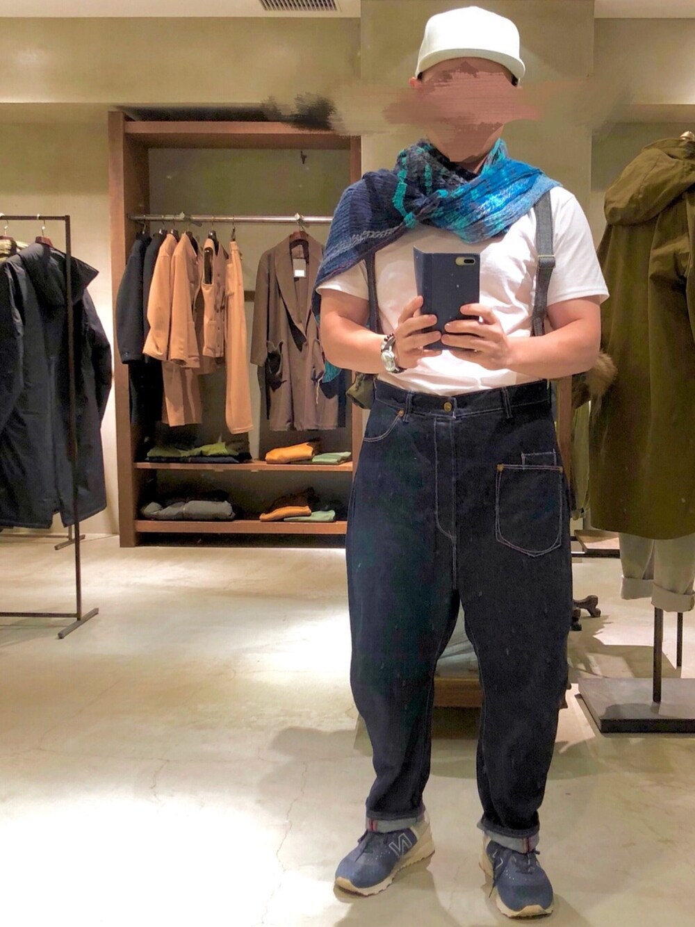 「ALL FOR 玉木新雌デニム」 玉木新雌さんとジョンブルがコラボしたデニムを主役にコーデ。 サルエルのゆったり感と、サイドの丸いラインが綺麗。 Zengoデニム由来のポケットも面白い。カラフルなステッチもラベルもユニーク。そして何よりも清潔感が良い! いつものコーデとは雰囲気が違うので自分でも新鮮^_^