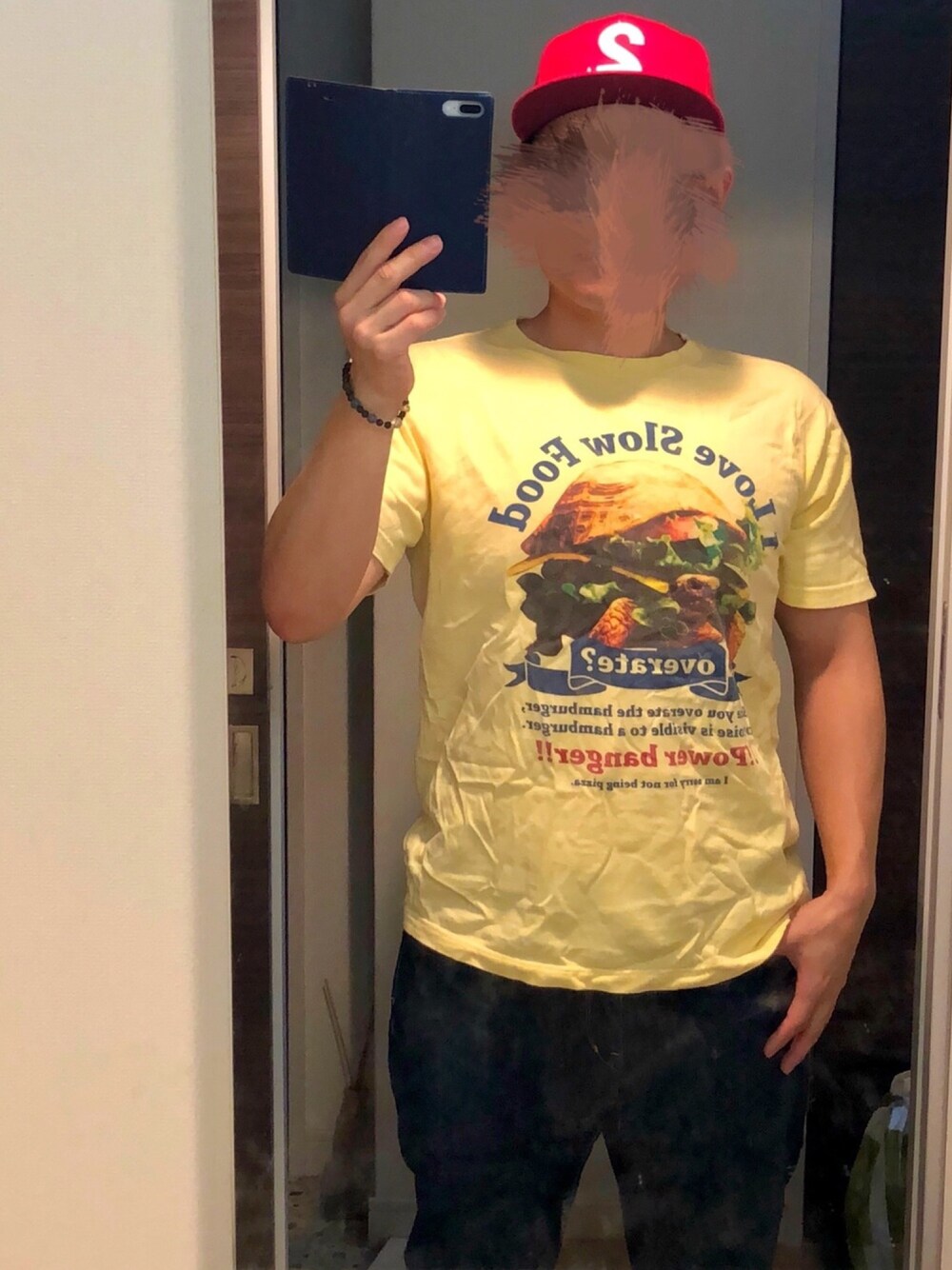 「磯野〜!アメフトしようぜ〜!」 「T-shirt Trinity」で4年前に注文したハンバーガータートルのTシャツにカトーのデニムを合わせてアメカジに! もう夏も終わりなので着たい夏コーデを着尽くす!