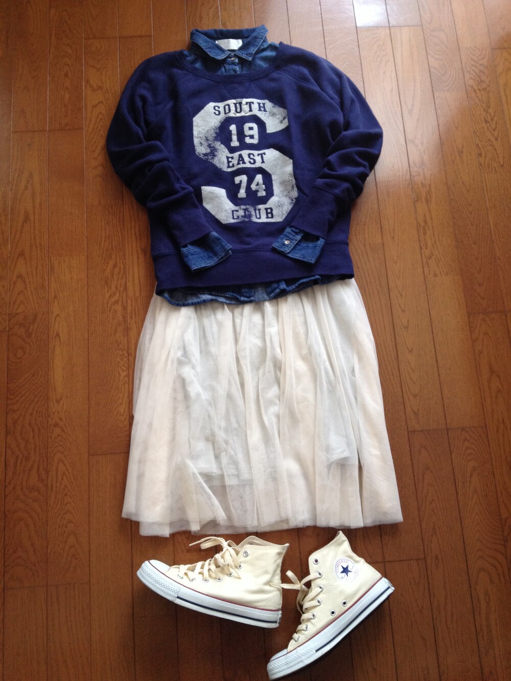 スカート:THE EMPORIUM トレーナー:UNIQLO