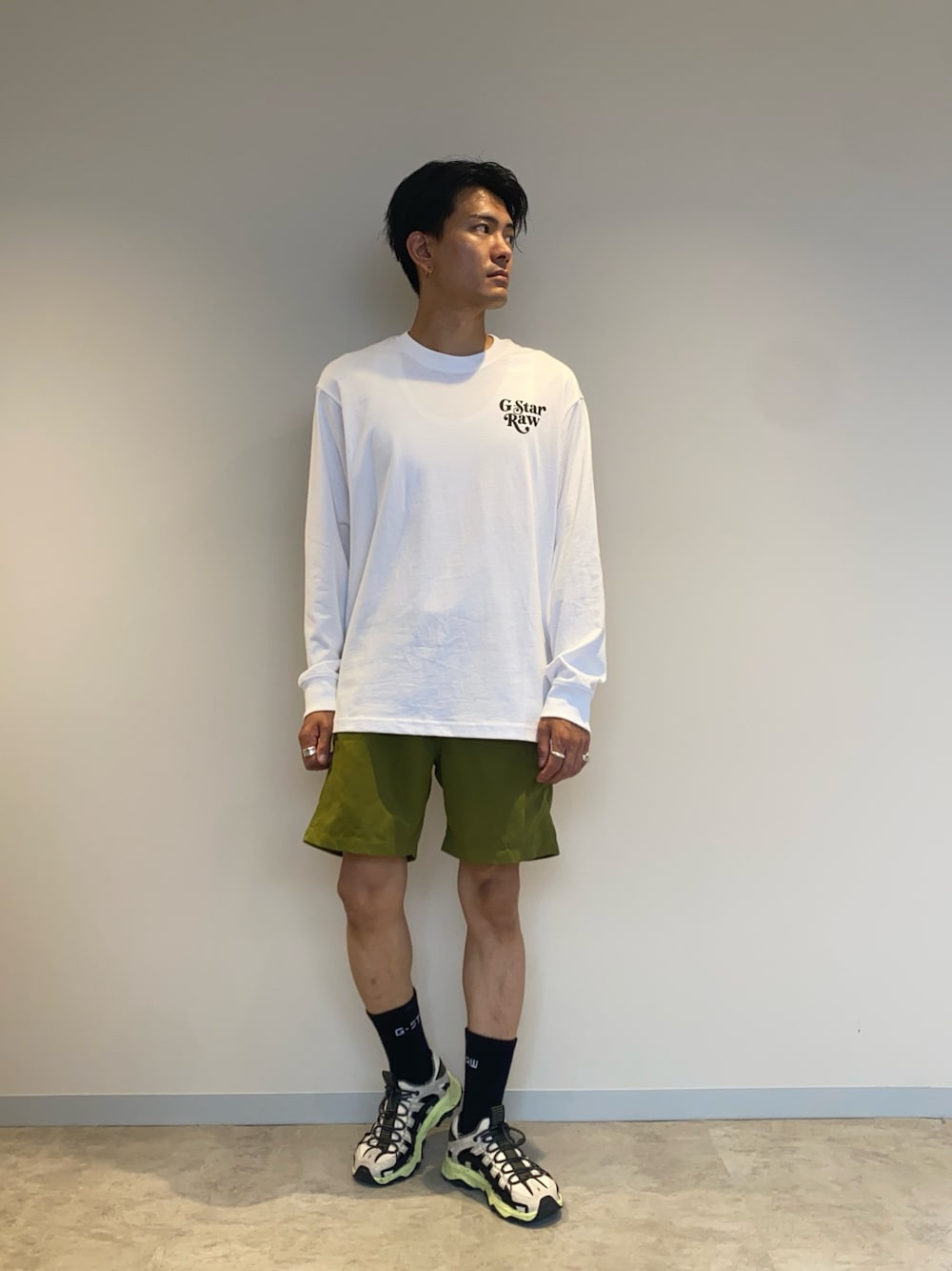 りゅうじ(G-Star RAW)のTシャツ/カットソー「FOXY CHEST BOXY T-SHIRT/グラフィックロゴオーバーサイズロングスリーブT」を使ったコーディネート