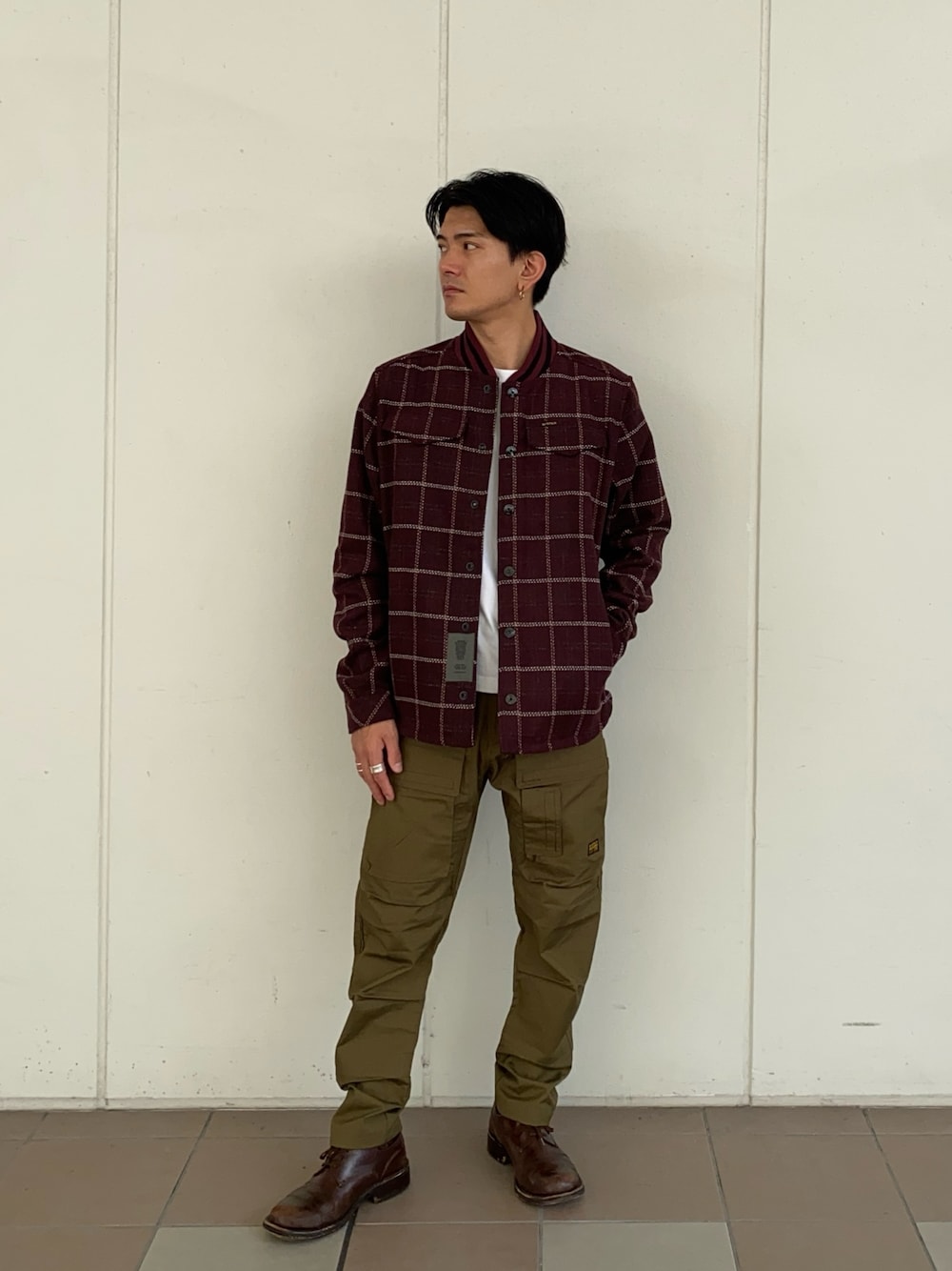 りゅうじ(G-Star RAW)のブルゾン「BOMBER COLLAR OVERSHIRT/チェックシャツジャケット」を使ったコーディネート