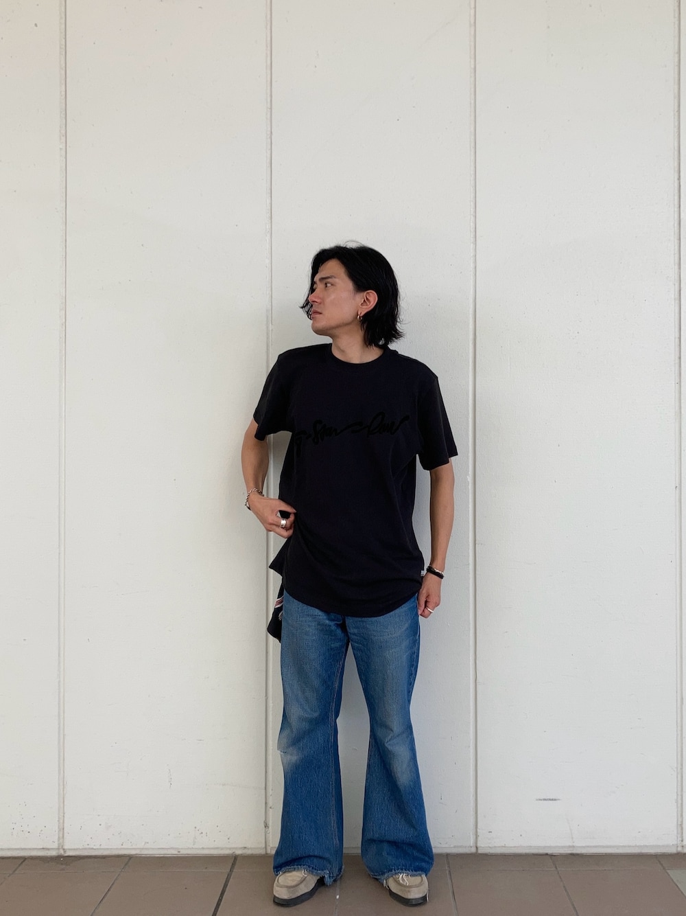 ・夏に向けてシンプルにTシャツとブーツカットデニムを合わせて 着用サイズ ・167cm/57kg ・Tops:Sサイズ ・Bottoms:W27L30
