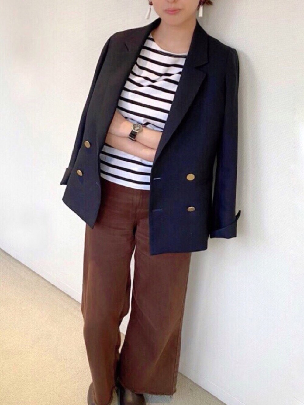 意外にも合わせやすいブラウンパンツ❁ ボーダーとも相性☻
