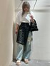 ⭐各アイテムのおすすめポイント  ̄ ̄ ̄ ̄ ̄ ̄ ̄ ̄ ̄ ̄ ̄ ̄ ̄ ̄ ̄ ̄ ̄ 【トップス】 ビジューのついたTシャツ✨ 身幅や袖丈がゆったりしていますが、丈感がショートなので体型カバーもスタイルUPも叶います◎ ビジューはしっかり付いているので取れにくそうです! 【ボトムス】 トレンド感のあるダメージデニム! 脚のラインを拾わず、ダボついて見えない絶妙なワイドストレートシルエットになってます!細見え脚長効果◎✨ カラーによって違うデザインも可愛いです🩷