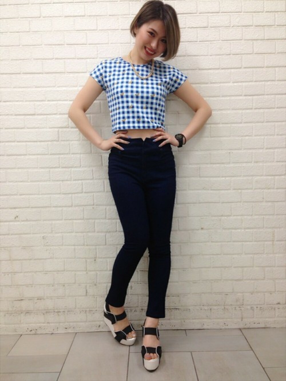 RUMIのTシャツ/カットソー「ギンガムバナナショートT」を使ったコーディネート