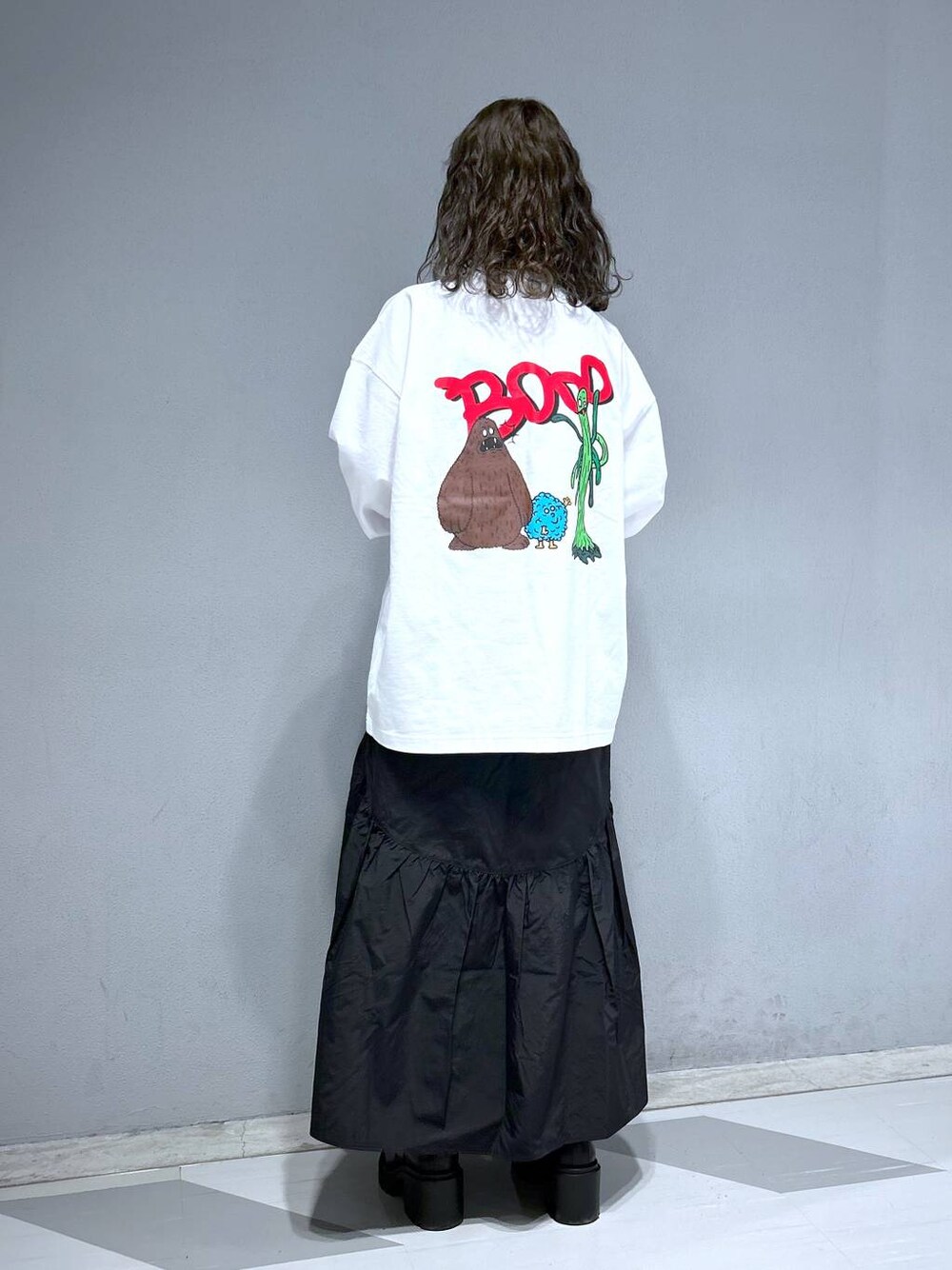 理咲(RAGEBLUE梅田ヘップファイブ店)のTシャツ/カットソー「【toothblue/トゥースブルー】イラストレーターコラボ/ルーズロンT」を使ったコーディネート