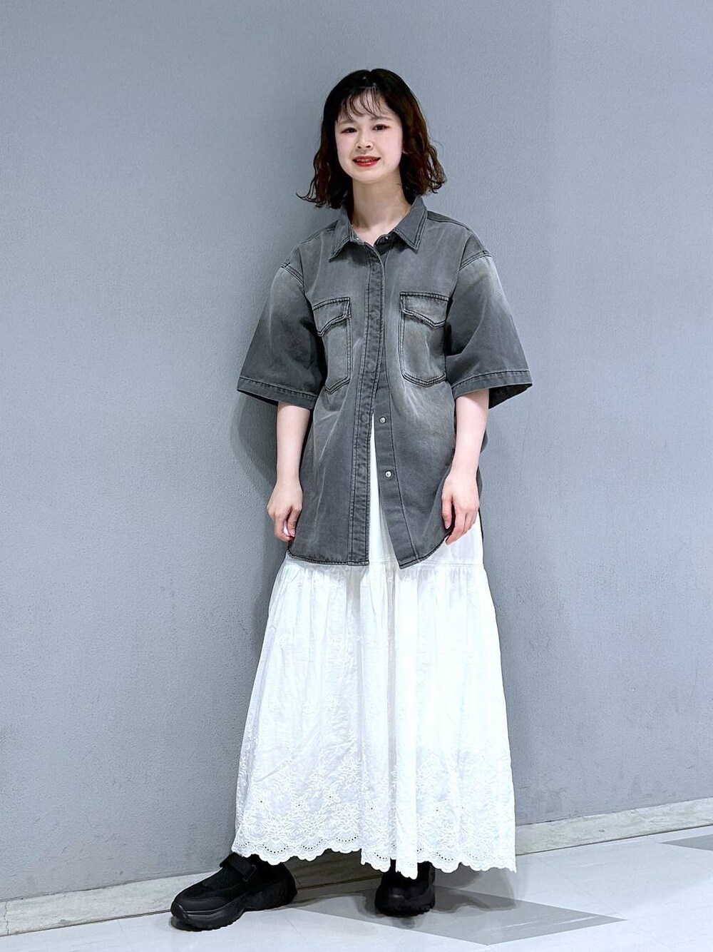 理咲(RAGEBLUE梅田ヘップファイブ店)のスカート「コットンレース切替フレアロングスカート」を使ったコーディネート