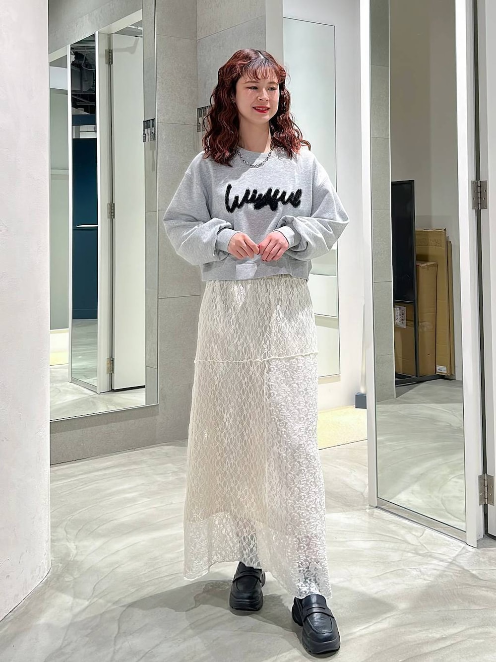理咲(RAGEBLUE梅田ヘップファイブ店)のローファー「抗菌・防臭/トラックソール厚底コインローファー」を使ったコーディネート