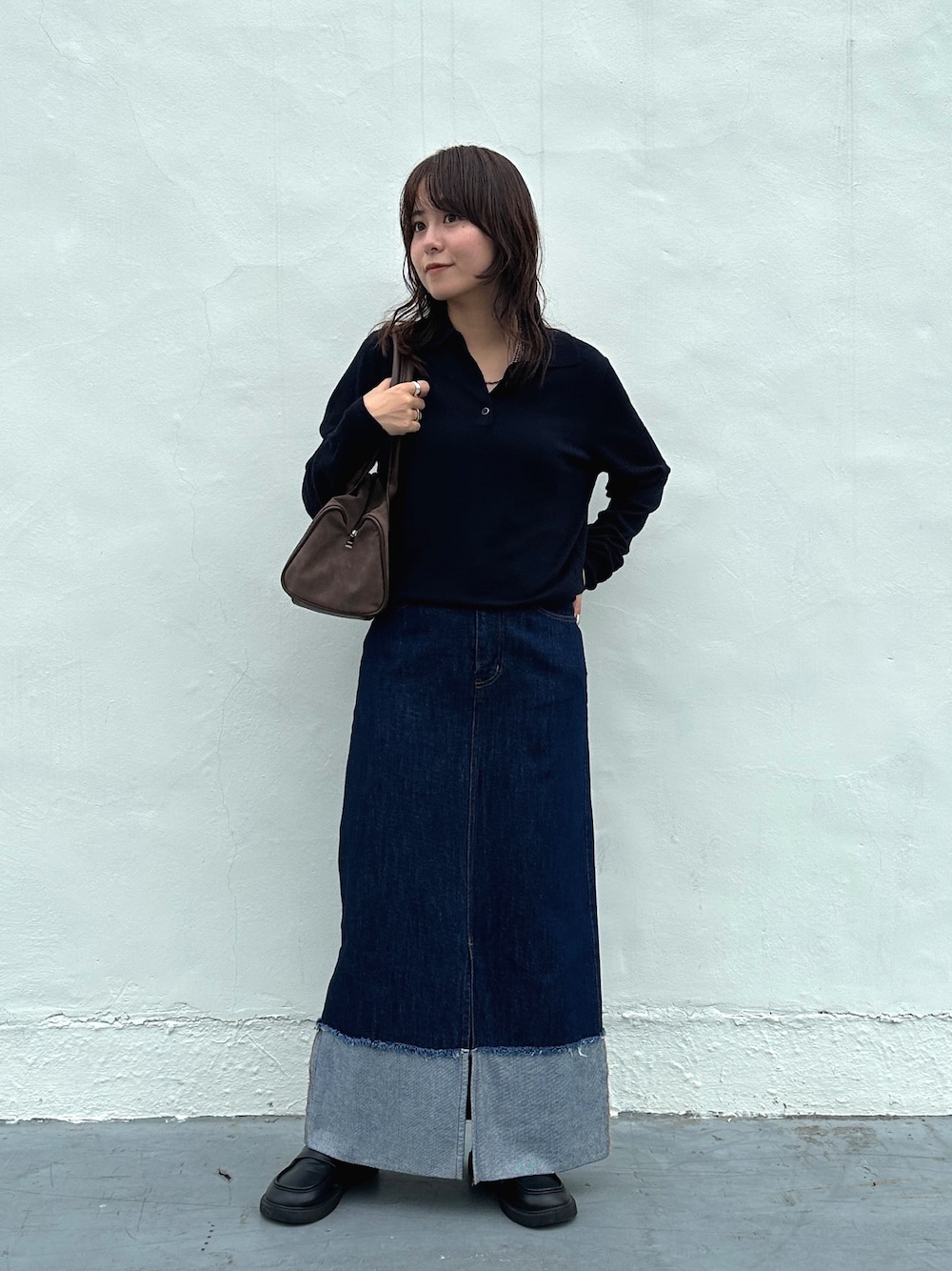 Riko(マルチサイズショップ)のデニムスカート「ロールアップデニムロングスカート」を使ったコーディネート