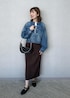 デニムジャケットは柔らかい履き心地で凄く軽いです。 Tシャツはボトムの中に入れて着ると綺麗めにも仕上げてくれます。 タイトスカートはストレッチもきいていて歩きやすいです。