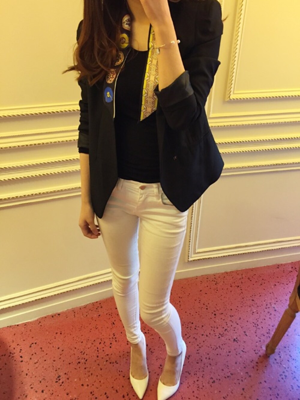 라영のノーカラージャケットを使ったコーディネート