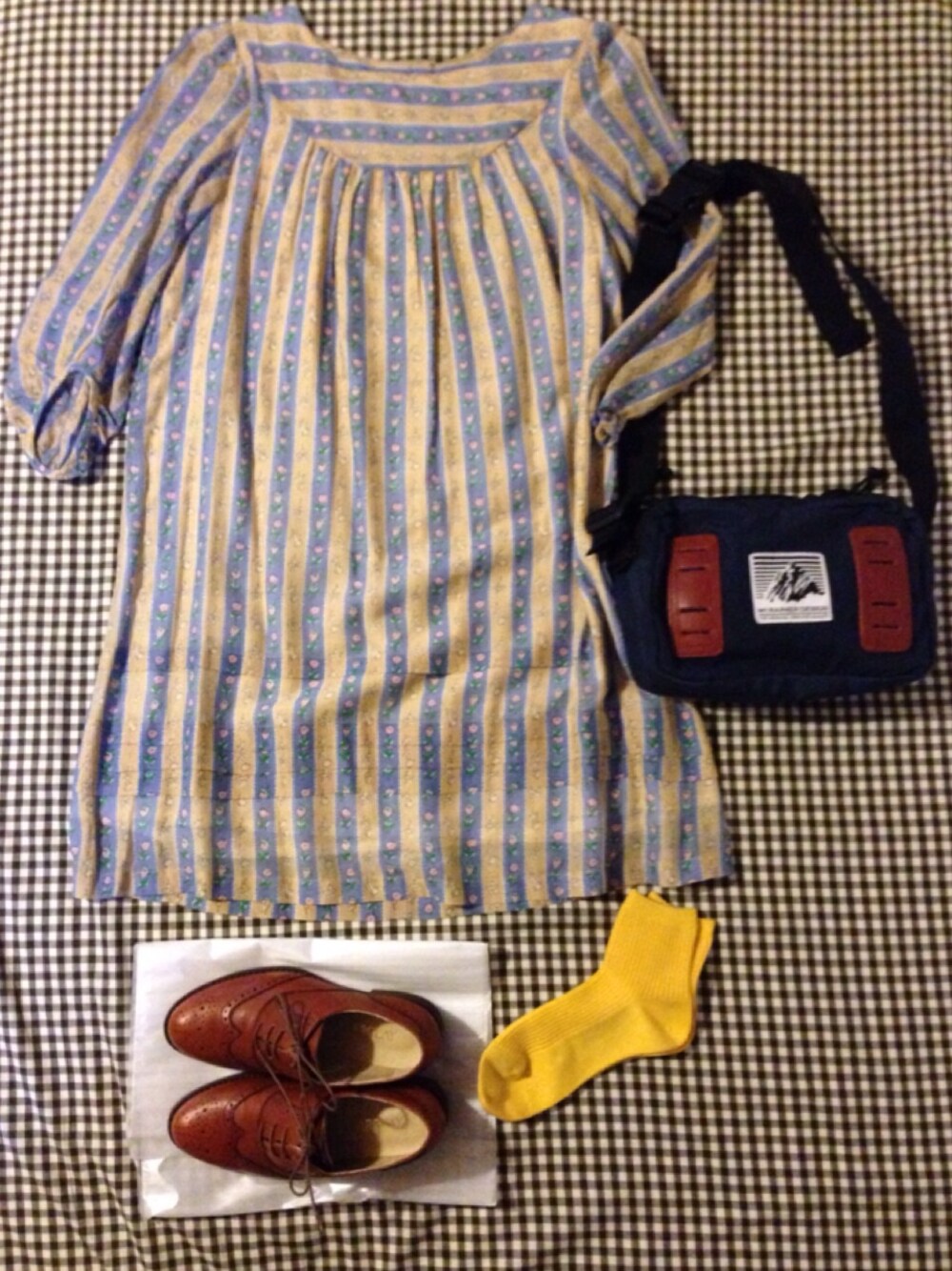 春は花柄ワンピースが着たくなります☺︎ ワンピース‥Par Avion 靴下‥靴下屋 靴‥BARCLAY バック‥MT RAINIER DESIGN