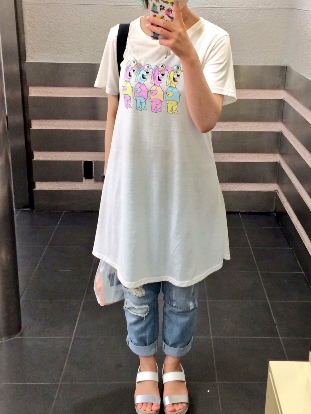 うさぎちゃんが可愛くて即買い。シャツワンピ、単体で脚見せはちょっと気が引けたので...。笑