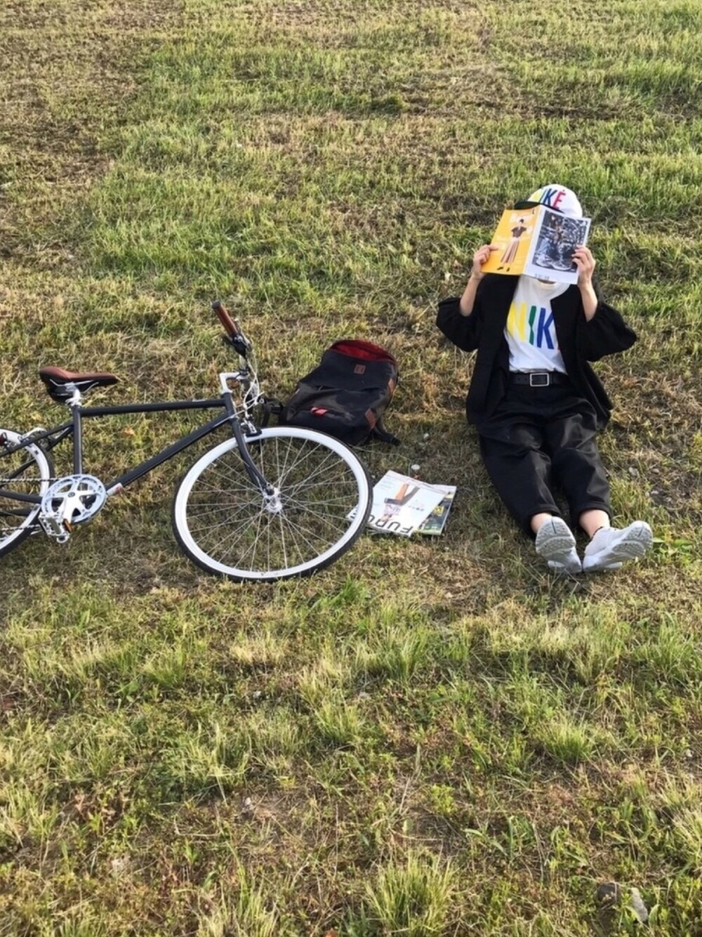 久しぶりのチャリ活🚲 お菓子とジュースと雑誌買って、 子供たちと土手へ👩🏻👧🏻👦🏻