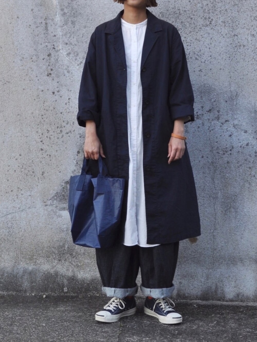 Rabbitsekine🐰のシャツワンピース「コットンダンガリーダブルポケットロングワンピース」を使ったコーディネート