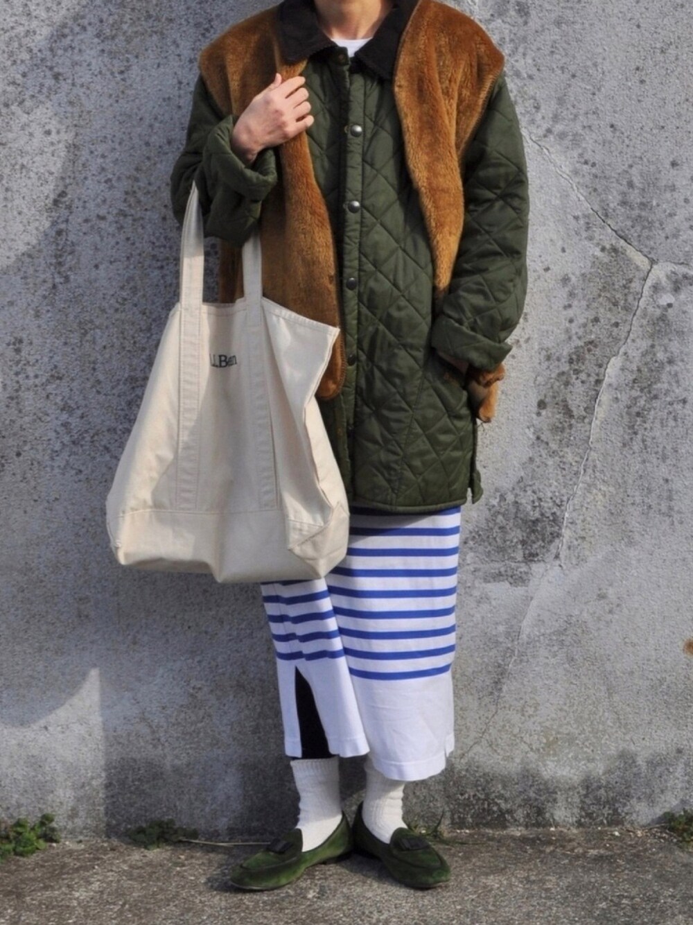 Rabbitsekine🐰のワンピース「BEAMS BOY / ナバルボーダー ロングワンピース 7分袖」を使ったコーディネート