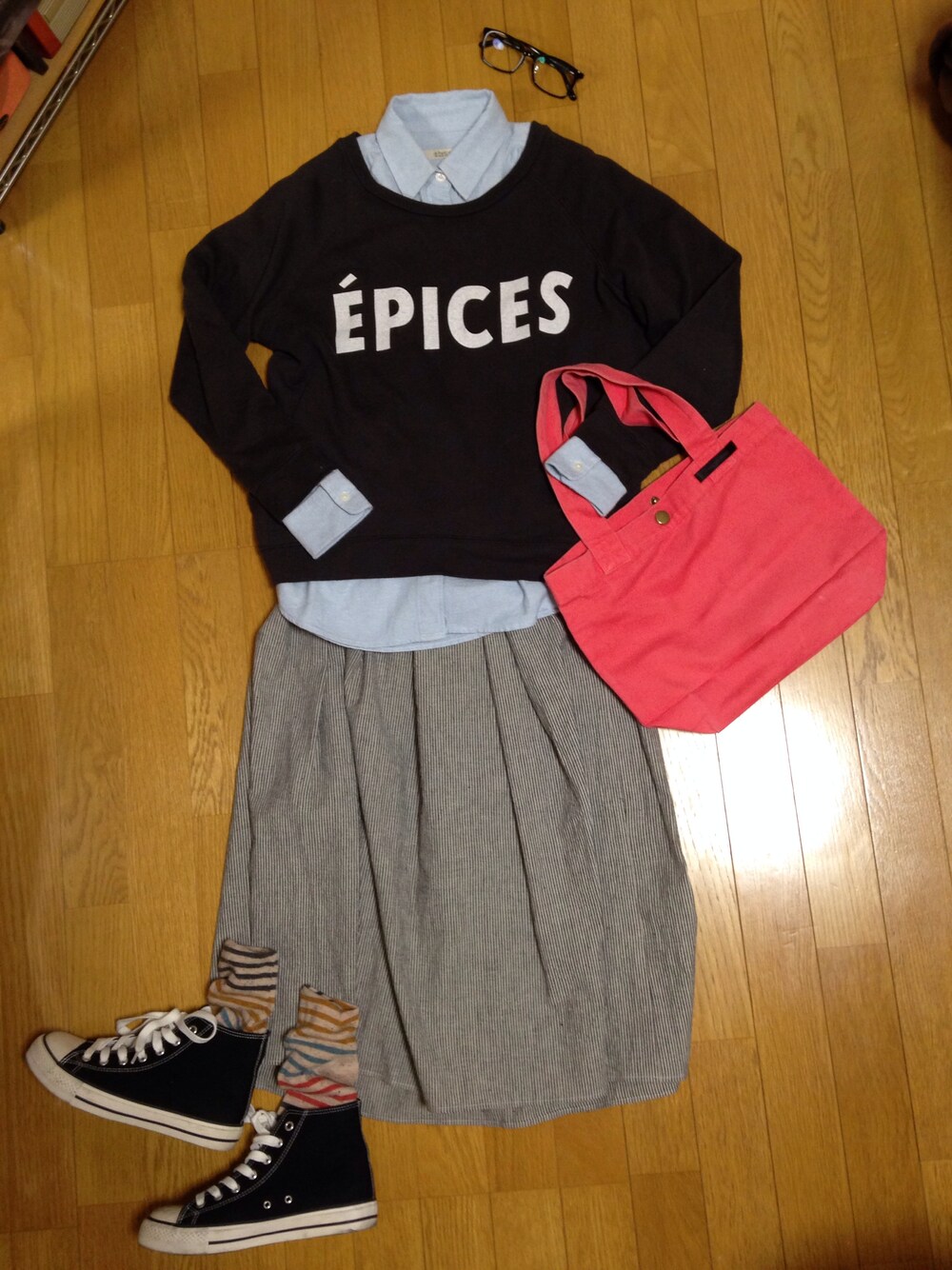 ◉デニムシャツ…GLOBAL WORK ◉スカート…chambre de charme ◉スエット…LEPSIM