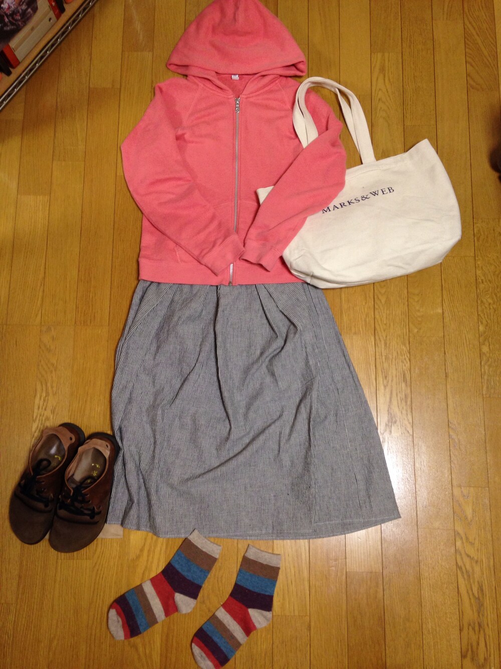 ◉スカート…chambre de charme ◉パーカー…UNIQLO ◉靴…BIRKENSTOCK