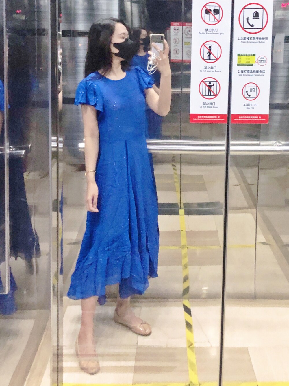 超喜欢这个蓝色,真丝面料非常飘逸,银丝嵌入使得整条裙子在阳光下闪闪的