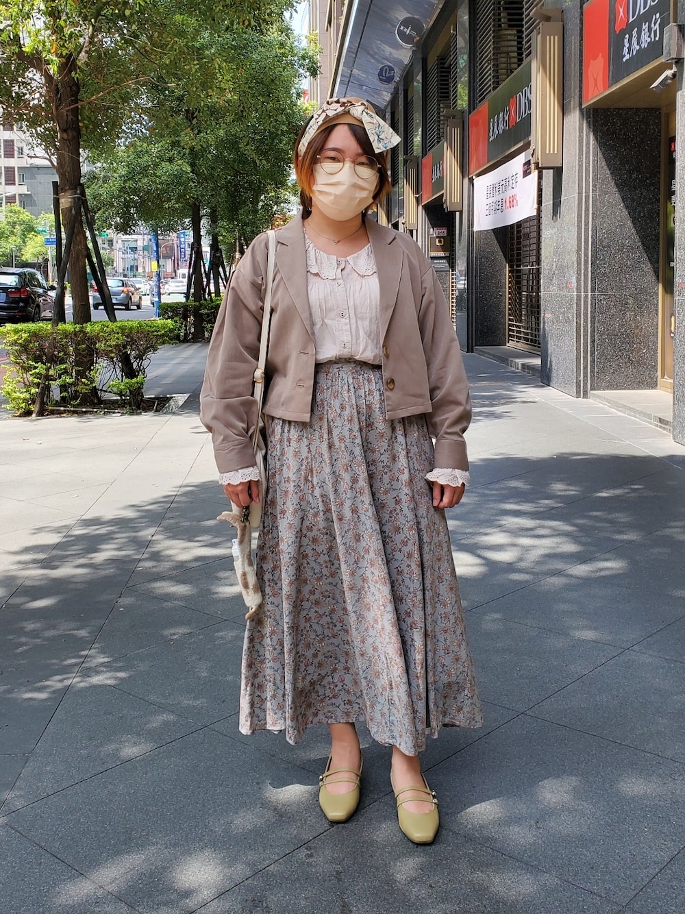 Moca x Blue 復古顏色的花紋長裙 跟摩卡色外套超搭 這天體驗了刺繡以及藤編籃子 很有趣的手作課