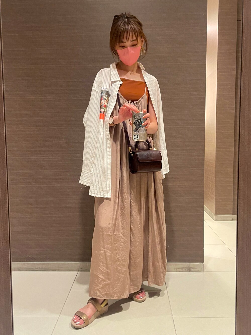 まだ日中ちょっと暑いから キャミワンピにシャツ羽織り!
