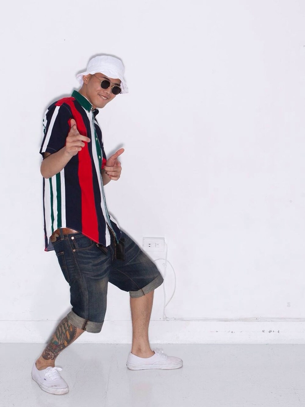 Hat / PrettyNice-All White Everything Bucket hat Shirt / Nautica Coin Pouch / YSL Shorts / Levi's Sneakers / VANS