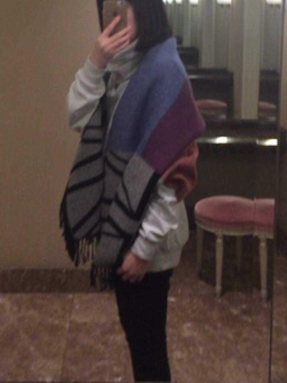トリコロールカラーのショールは 3~4年前に一目惚れして買ったものです◎ 羽織るととても暖かい☺ お気に入りです!