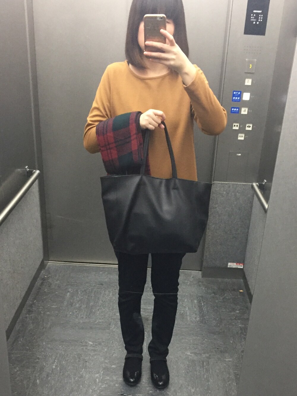 仕事着。 行き帰りしか着ないし、 ほぼ電車なので薄着です。 ダウンベスト欲しいなぁ~