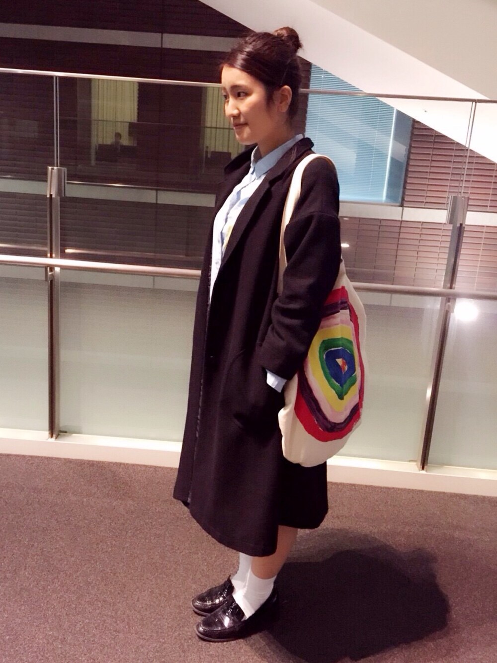 今年買った初アウターは、ポケットのデザインとオーバーサイズがお気に入り。 カラーシャツとの相性がバッチリ! これからのコーデが楽しみ♡ この日は、YUKIちゃんのLIVEの翌日だったので、余韻に浸って、グッズのバックを持ってきちゃいました。