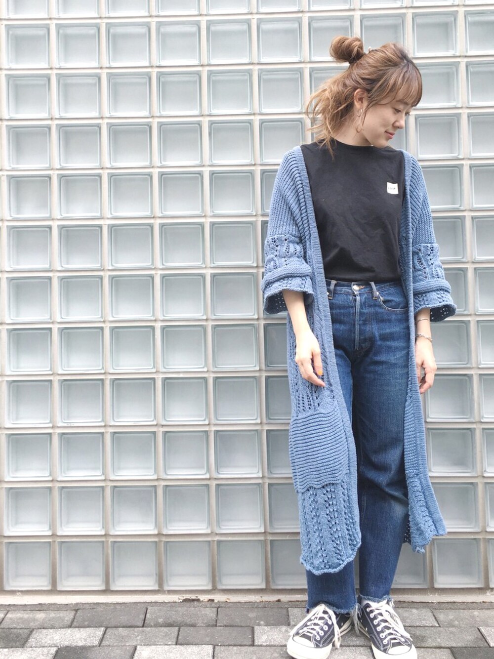 デニム×Tシャツのご近所スタイルをクロシェニットのカーディガンでお仕事用に☺︎