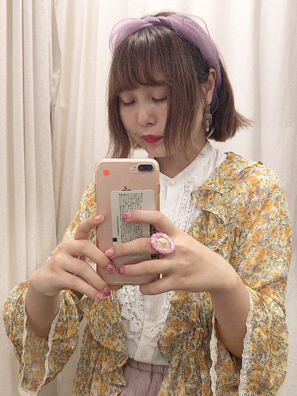 インスタに載せたこの写真も! キロショップでスカーフ購入 色と素材に一目惚れ、、、(*ö*)♡ アレンジ頑張っているので ヘアバンドやカチューシャ まだまだ集めます 〜 ◎