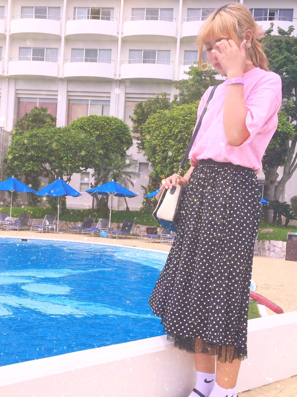 あらかわみか(みかんぬ)のスカート「ドット×メッシュリバーシブルスカート」を使ったコーディネート