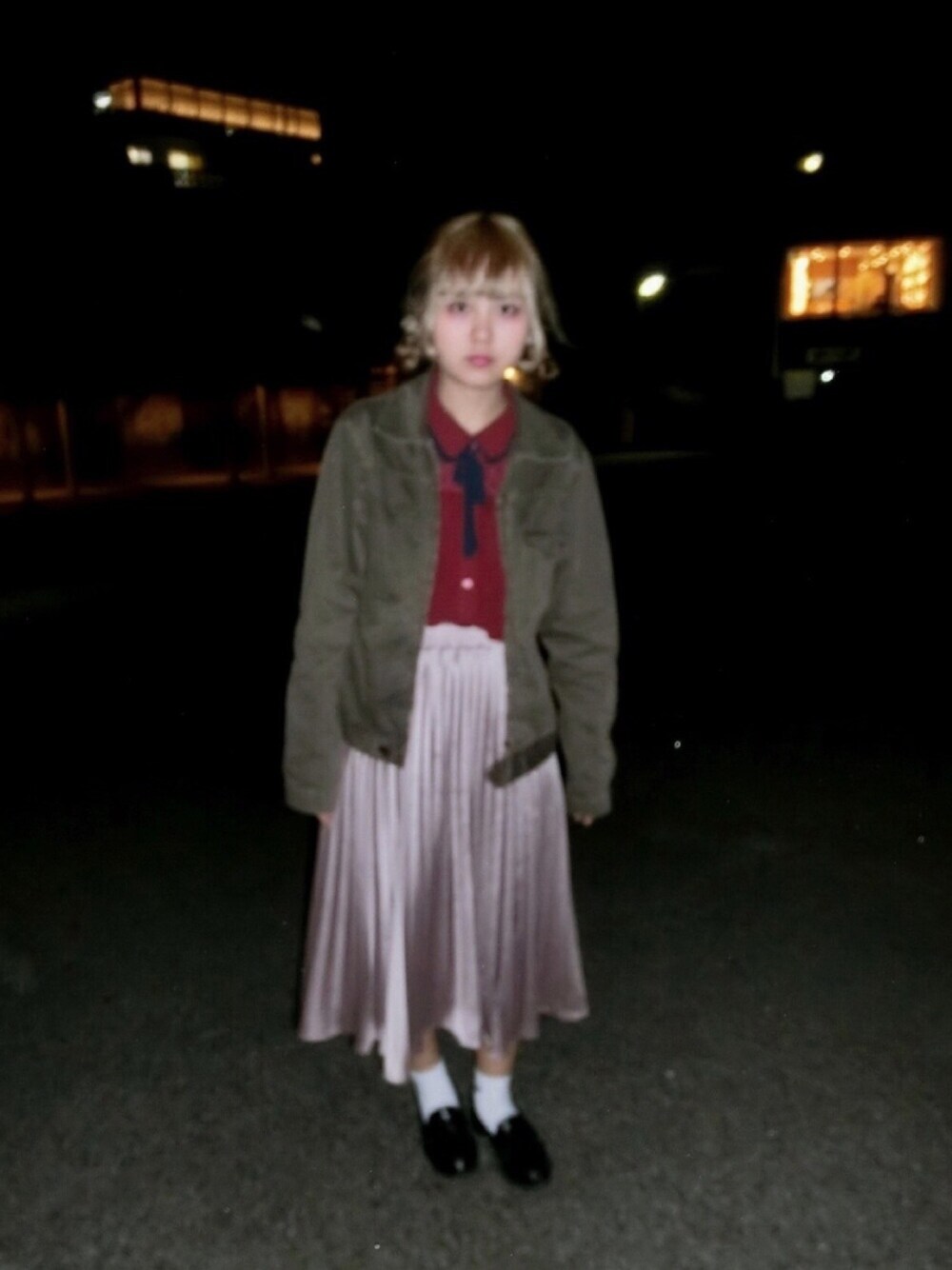 このスカート夜撮ったら フラッシュ反射して光る、かわいい 久しぶりのNIKE白ソックス みなぽよが撮ってくれた〜謝謝