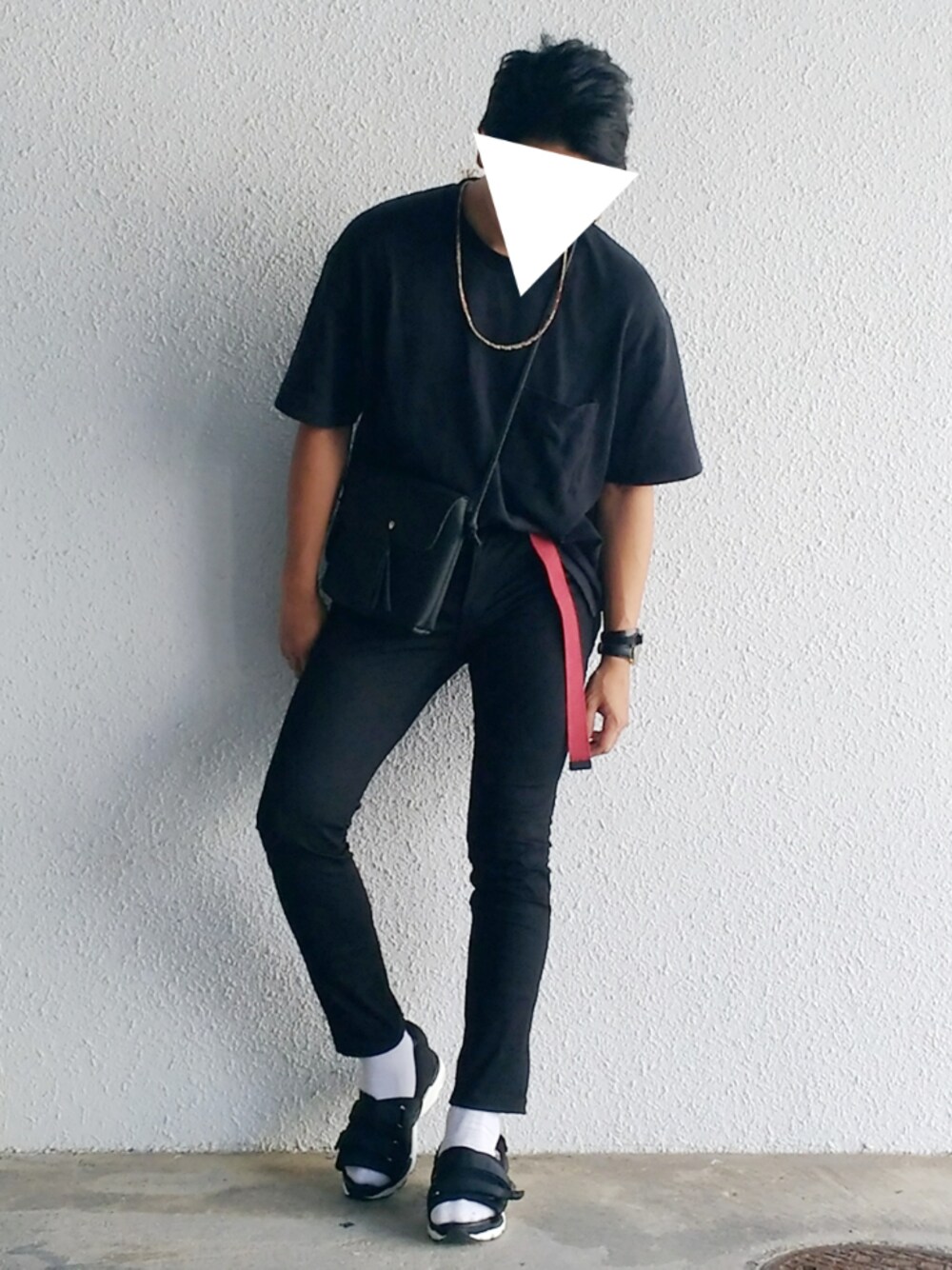 43日目です。 モノトーンコーデです。今回は白も少しだけ増やして、ワンポイントで赤が入ってます。 本当はロングレザーベルトをつけたい。来月まで我慢。 また台風上陸しそうですね。やだなぁ。