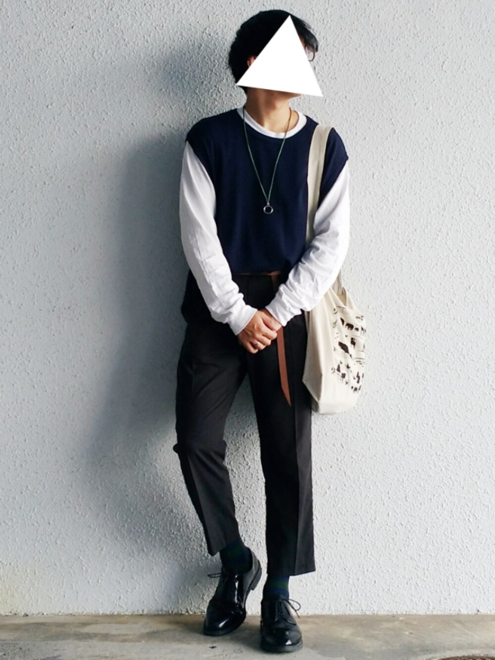 けびすけのニット/セーター「ニットベスト」を使ったコーディネート