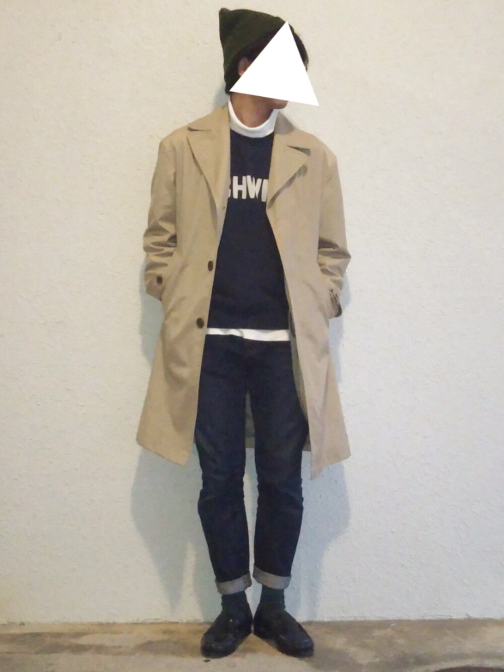 99日目です。 さっき撮りました。暗い。 GUのタートルネックT使いやすくて良いです。 ただ、結構縮むからワンサイズアップで着たほうがいいかもです。