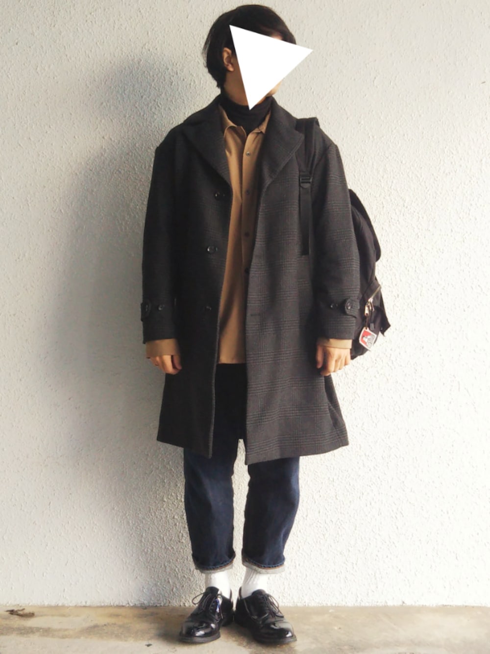 113日目です。 GUコーデ。靴とバッグ以外。 やっと厚手のコートが着れると思って着たけど、あっつい。