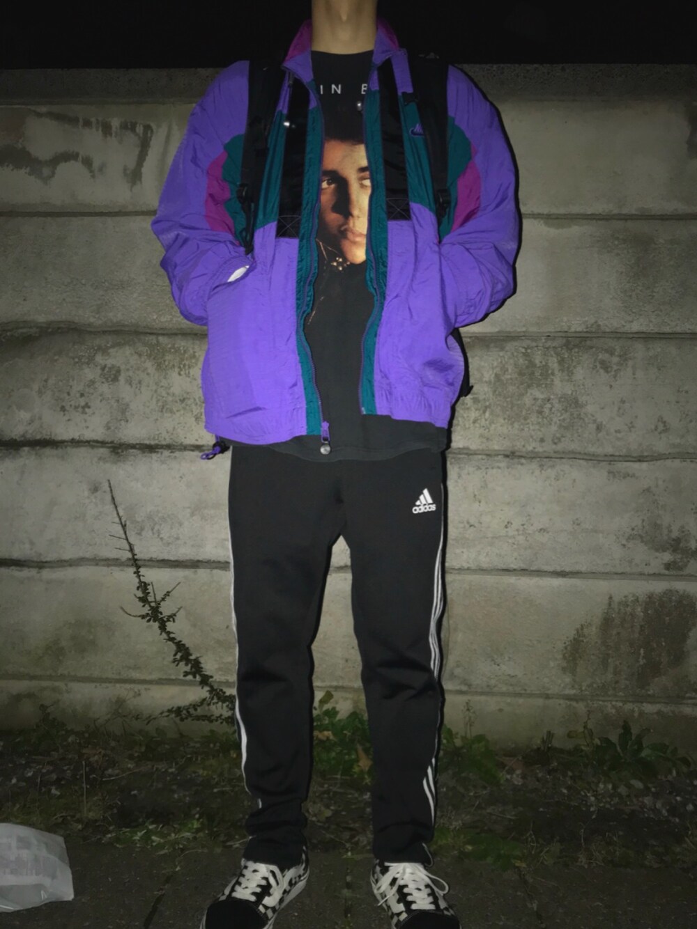 90'sのナイロンジャケットにダボダボめのトラックパンツ😌 裾まくれば良かった