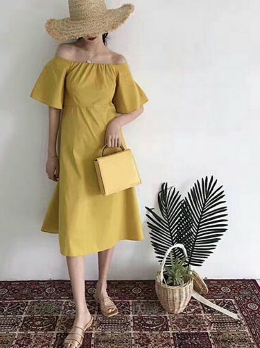 大人なマスタードカラーのオフショルダーワンピース。 TOP💻からお店に入れます🔝 ご購入は▷http://raffinas.thebase.in