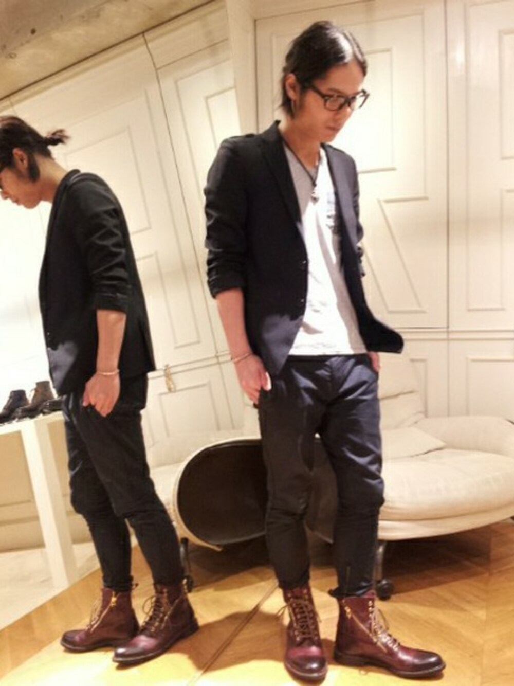 suzukiのブーツ「Wジップブーツ」を使ったコーディネート