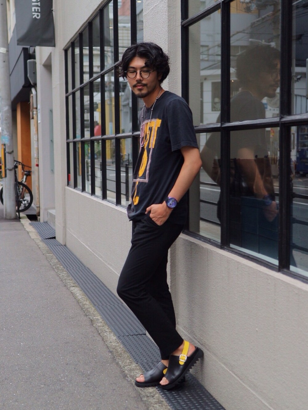 オールブラックのスポーツミックススタイル。 差し色のイエローがアクセントに!