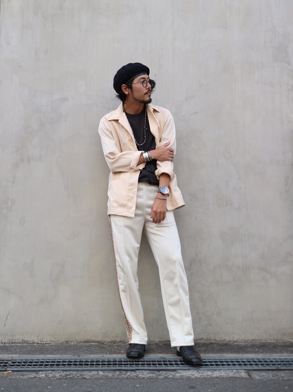 明賀健太(アルフレッド・バニスター 南堀江店)のドレスシューズ「スクエアミュール」を使ったコーディネート