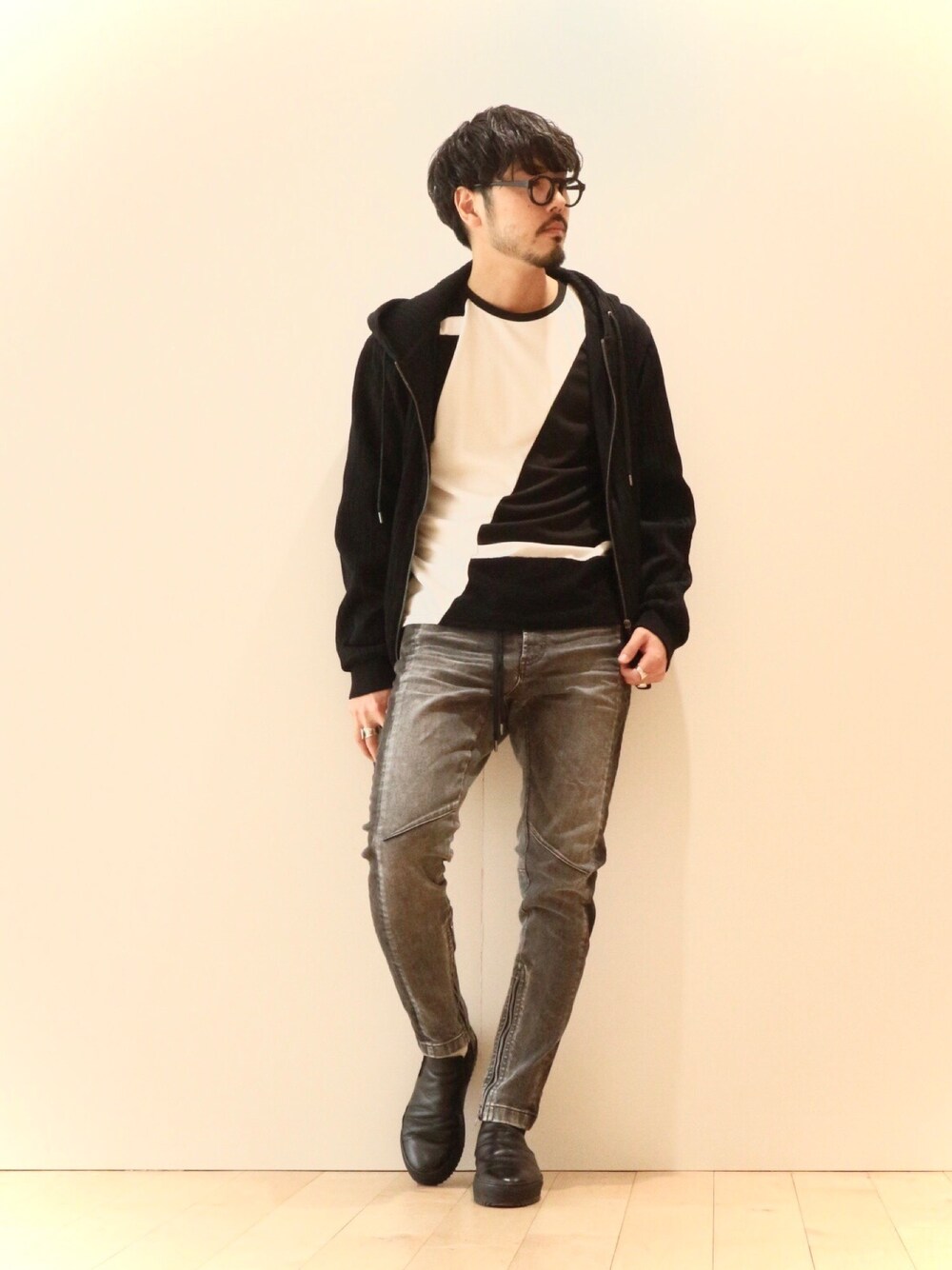 明賀健太(アルフレッド・バニスター 南堀江店)のパーカー「セットアップ対応 プリーツブルーゼトラックパーカー」を使ったコーディネート