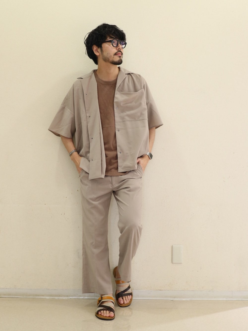 いつもいいね👍 お気に入り❤︎ ありがとうございます🙇♂️ 日中の気温が上がって来たのでサンダルを使ったコーディネート💁♂️ 全体をベージュ系統で統一🐫 セットアップで合わせる事でだらしなくならないように🕴