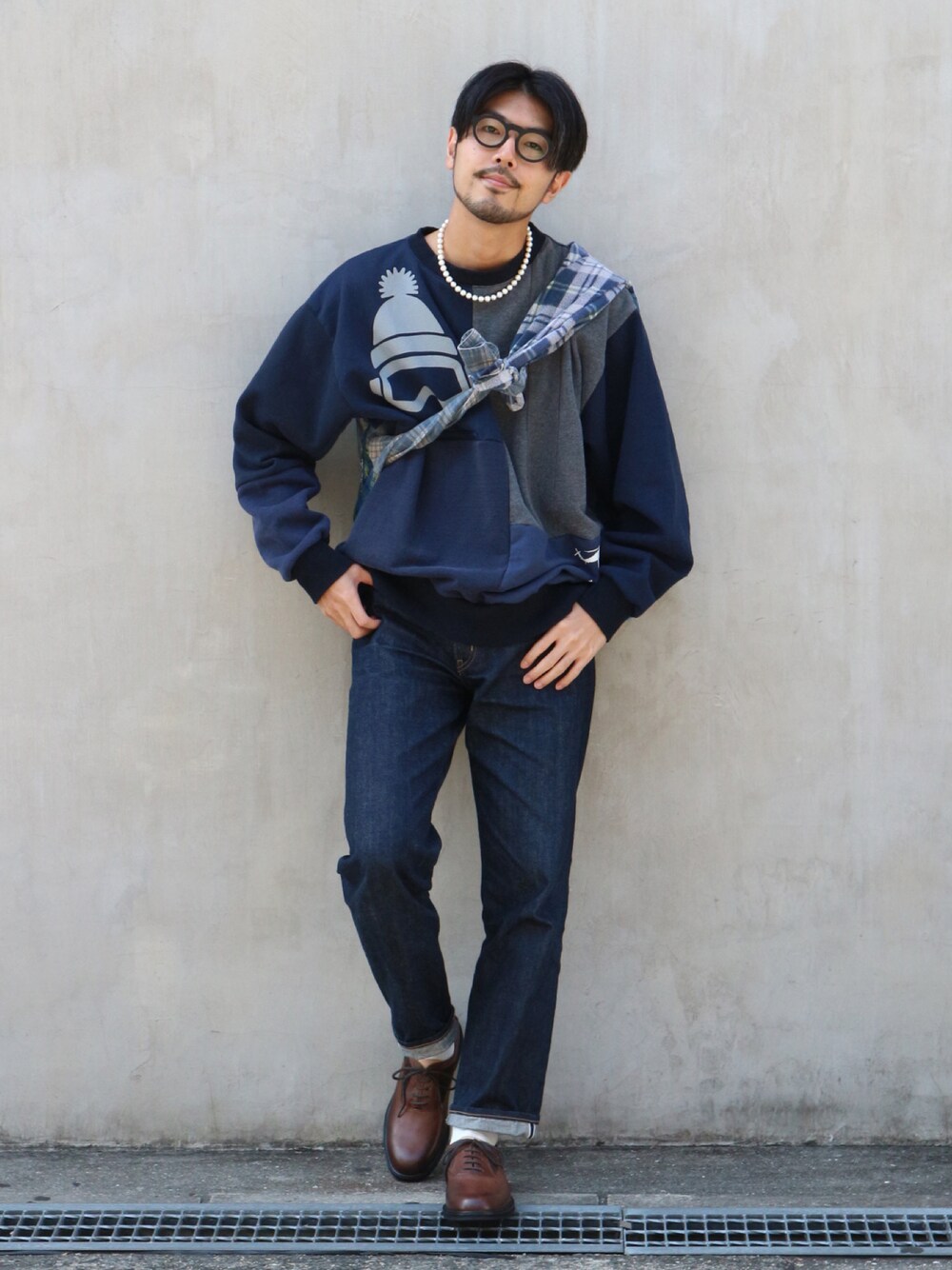 2nd existenceのリメイクアイテム ネイビーで色味を揃えて足元は革靴で👞 Instagram:@kenta_myoga