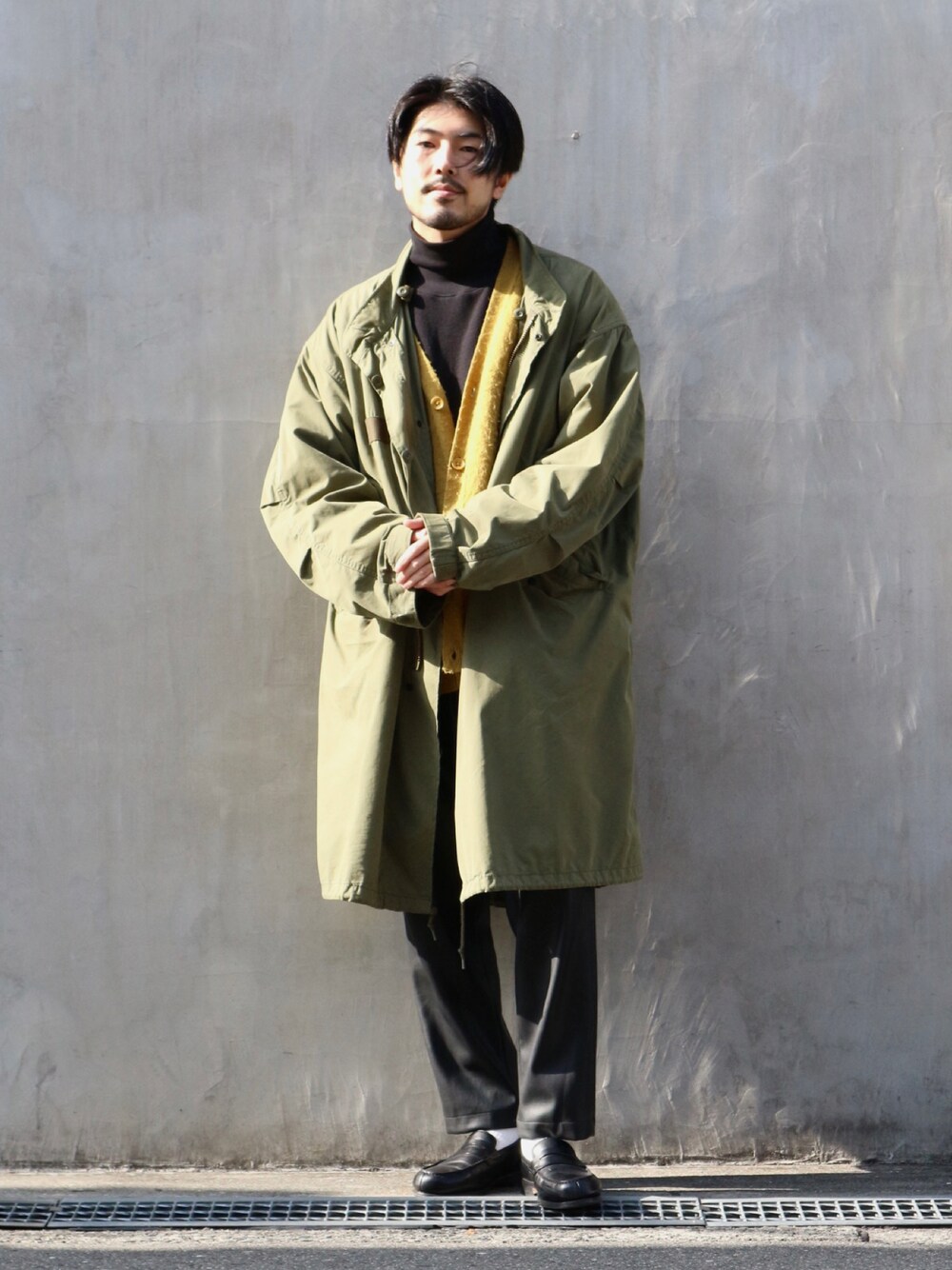 明賀健太(アルフレッド・バニスター 南堀江店)のカーディガン/ボレロ「モヘアライク オーバーサイズ カーディガン」を使ったコーディネート