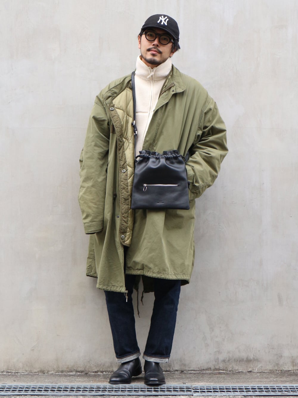 小物を黒で統一してまとまった印象に♟ Instagram:@kenta_myoga