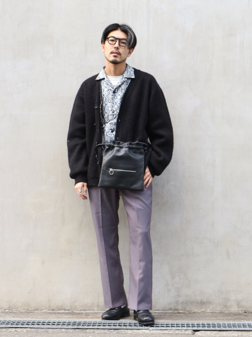 明賀健太(アルフレッド・バニスター 南堀江店)のスラックス「WEB限定【Wrangler×MYSELF ABAHOUSE】別注 イージーパンツ仕様 WRANCHER DRESS JEAN ラングラー ランチャー ドレスジーンズ」を使ったコーディネート