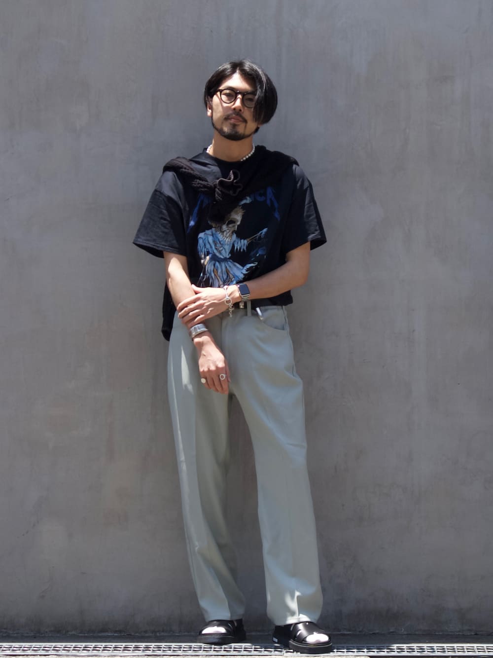 明賀健太(アルフレッド・バニスター 南堀江店)のサンダル「【WEB限定】バックストラップ フットベット サンダル」を使ったコーディネート